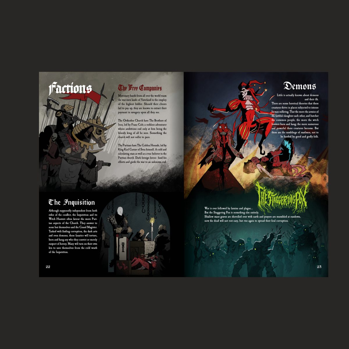 Embark on a dark and daring adventure where death and destruction lurks around every corner. The gunpowder and witchcraft infused game is a complete stand-alone RPG based on and compatible with the multi-award-winning apocalyptic heavy metal RPG MÖRK BORG. This action packed, rules light, art heavy OSR game offers swashbuckling adventure and gothic folk horror in an unholy blend.
