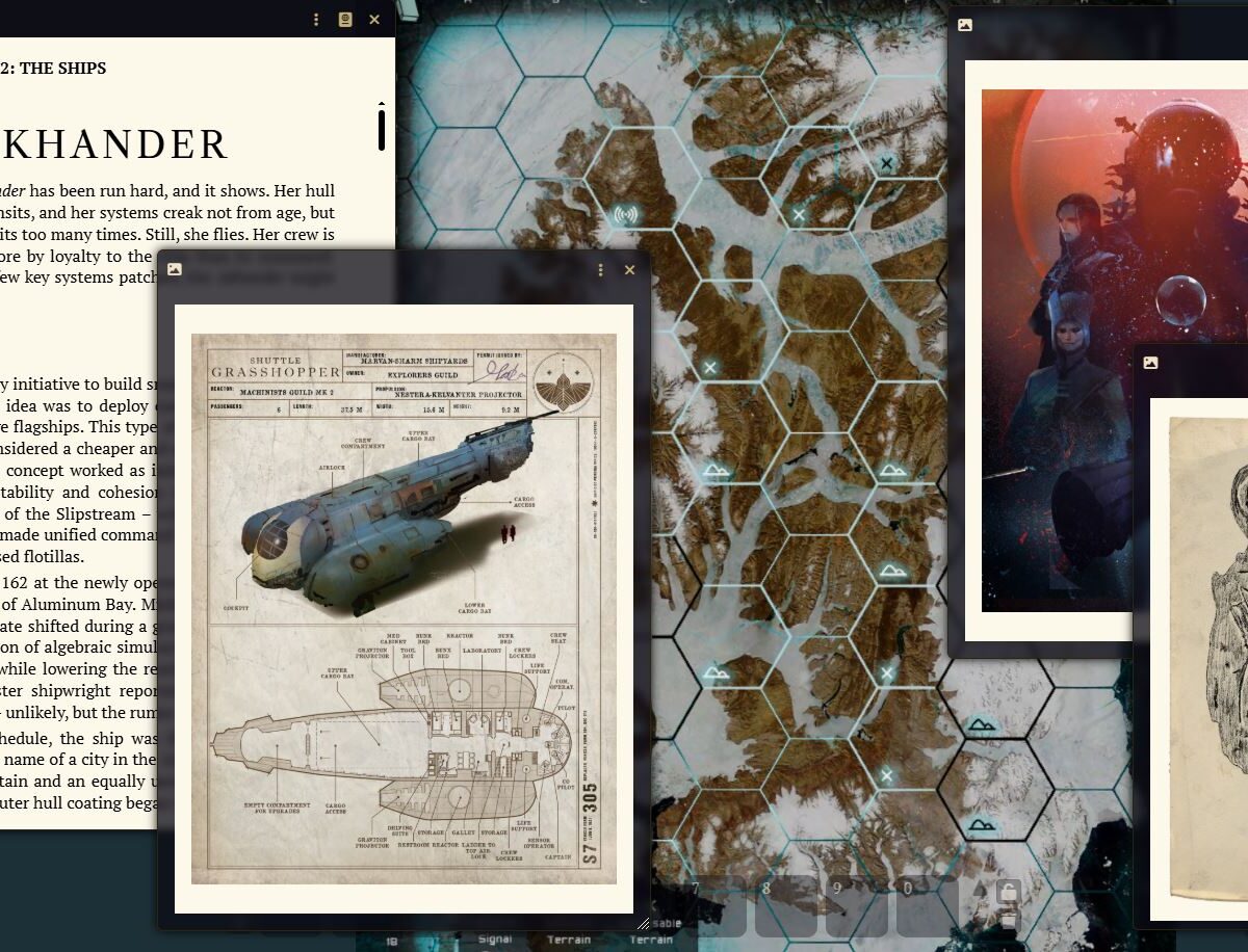- 22 Scenes – maps of the Charted Sphere, the Lost Horizon, Ship City and more