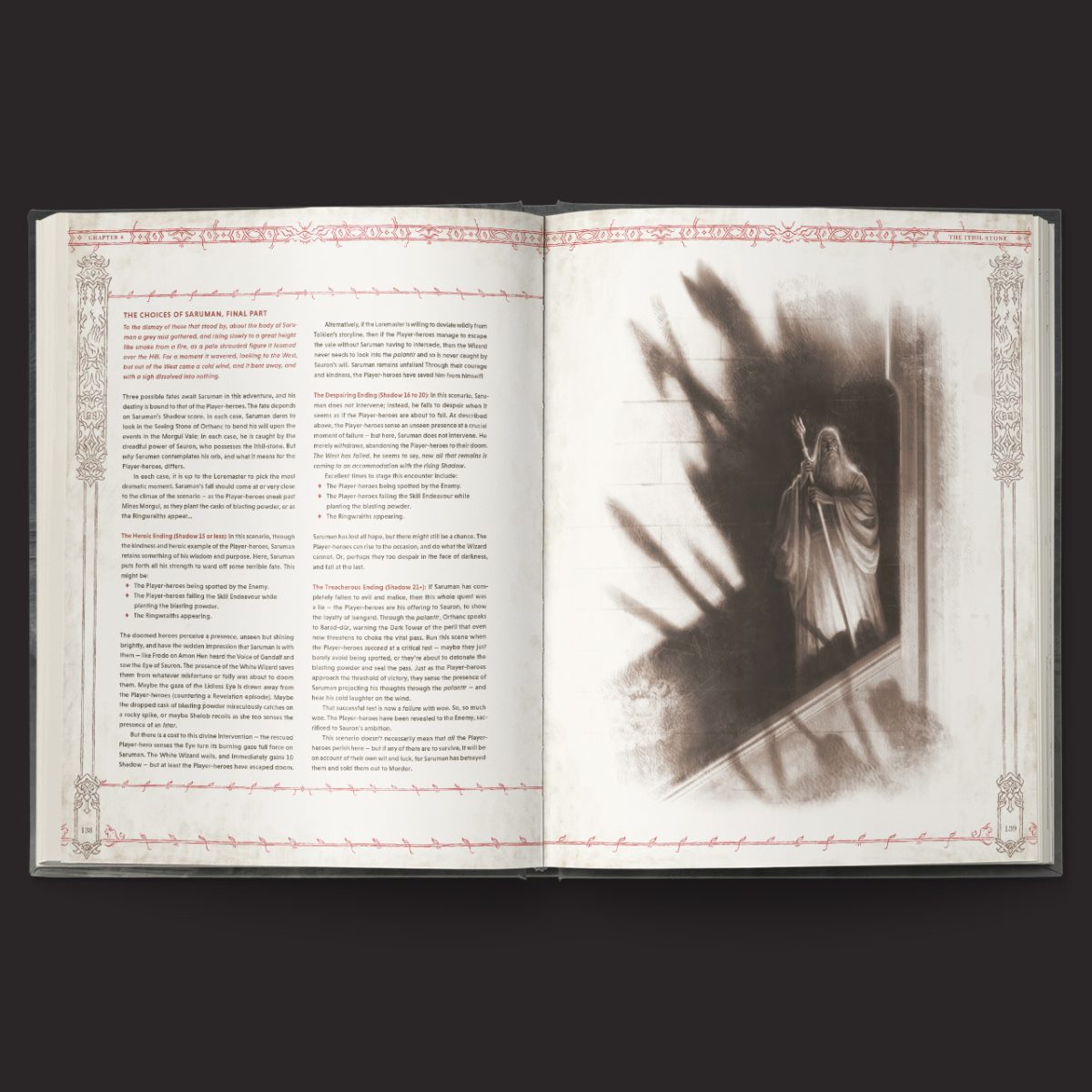 For Saruman the White is the Lord of Isengard, a counsellor to kings, a master of Ring-lore, and the chief adversary of the Enemy. Great is his wisdom, yet greater still is his pride. The tale starts before his fall; the treason of Isengard has not begun. Perhaps Saruman’s doom is already written, or perhaps the heroes can change the ending and save the White Wizard from corruption. Saruman’s fate – and that of all Middle-earth – lies in their hands!